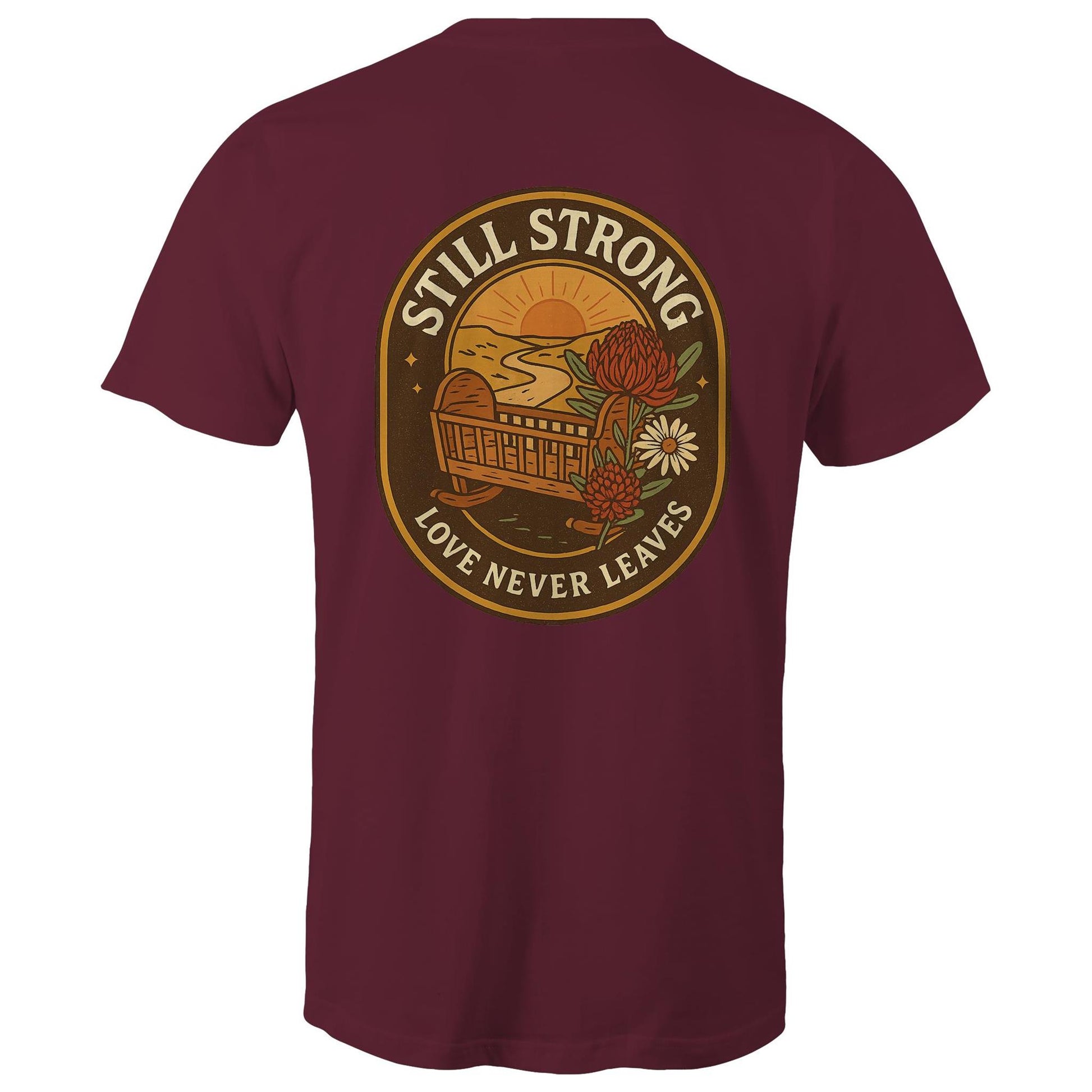 This design carries a powerful message of remembrance, resilience, and enduring love. Featuring a rustic cradle set against a glowing sunset, surrounded by Australian natives including the waratah—a flower symbolising strength and resilience—this shirt honours the journey of love that remains, even through loss.